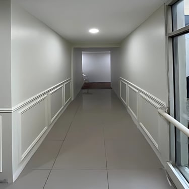 The challenge was to transform these transitional spaces — often overlooked — into areas that convey professionalism, clarity, and warmth.